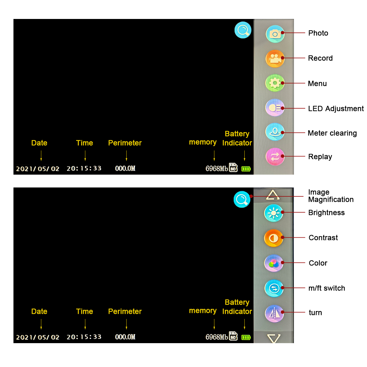 Cable Diameter 7mm 20M ~ 50MSnapshot JPEG Recording AVI Image Storage SD card Function Photo, audio recording, video recording Operating Time 6hrs Working Temperature -20℃ to 60℃ Store Temperature -30℃ to 70℃ Water Proof Camera & Cable water proof grade: IP68 Language English / French / German / Spanish / Japanese / Traditional Chinese / Simplified